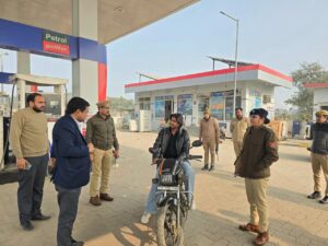 सड़क सुरक्षा एवं जन-जागरूकता को सुदृढ़ करने हेतु थाना कटरा व तिलहर क्षेत्र में “नो हेलमेट–नो पेट्रोल” अभियान के अंतर्गत किए गए पेट्रोल पंप निरीक्षण