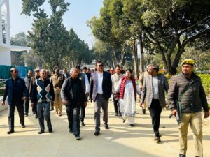 शाहजहांपुर 04 फरवरी। जिलाधिकारी धर्मेंद्र प्रताप सिंह ने नगर आयुक्त डॉ विपिन कुमार मिश्र, मुख्य विकास अधिकारी डॉ अपराजिता सिंह, अपर जिलाधिकारी प्रशासन रजनीश कुमार मिश्र के साथ श्री रामचंद्र मिशन के 50 वर्ष पूर्ण होने के उपलक्ष्य में 12 फरवरी से 02 मार्च तक चलने वाले समारोह के संबंध में तैयारियों का निरीक्षण किया