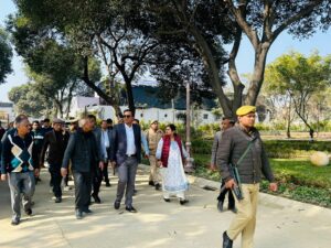 शाहजहांपुर 04 फरवरी। जिलाधिकारी धर्मेंद्र प्रताप सिंह ने नगर आयुक्त डॉ विपिन कुमार मिश्र, मुख्य विकास अधिकारी डॉ अपराजिता सिंह, अपर जिलाधिकारी प्रशासन रजनीश कुमार मिश्र के साथ श्री रामचंद्र मिशन के 50 वर्ष पूर्ण होने के उपलक्ष्य में 12 फरवरी से 02 मार्च तक चलने वाले समारोह के संबंध में तैयारियों का निरीक्षण किया। जिलाधिकारी ने एनएचआई के अभियंता को निर्देश दिए कि रोड एवं डिवाइडर का कार्य कराया जाए। उन्होंने फायर सेफ्टी एवं विद्युत सेफ्टी की जांच करने के लिए संबंधित अधिकारियों को निर्देश दिए। आरसी मिशन में पर्याप्त सीसीटीवी कैमरे लगाए जाए। आरओ टैंक के पानी की जांच कराई जाए। सीओ ट्रैफिक यातायात व्यवस्था के लिए अच्छे से प्लान तैयार करें। जिलाधिकारी ने अधिशासी अभियंता को निर्देश दिए कि आरसी मिशन में 10 फरवरी से 5 मार्च तक समारोह के समय 24 घंटे बिजली आपूर्ति कराना सुनिश्चित करें। जिलाधिकारी ने सभी अधिकारियों को निर्देश दिए की समस्त व्यवस्थाएं 10 फरवरी तक पूर्ण ली कर जाए। तत्पश्चात जिलाधिकारी ने मंडी रोड स्थित अहमदपुर रेती में साफ सफाई व्यवस्था का निरीक्षण किया। नगर आयुक्त को निर्देश दिए कि रोड के पास का कीचड़ हटाकर साफ सफाई कराई जाए तथा साफ सफाई सुनिश्चित की जाए।